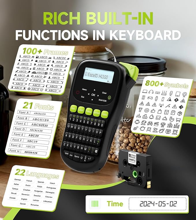 - Familiar QWERTY Keyboard for Intuitive Typing : The EazeID H1100 label maker comes with a QWERTY-style keyboard, making it easy to type text for any organizational task. The familiar layout reduces learning curves and enhances productivity