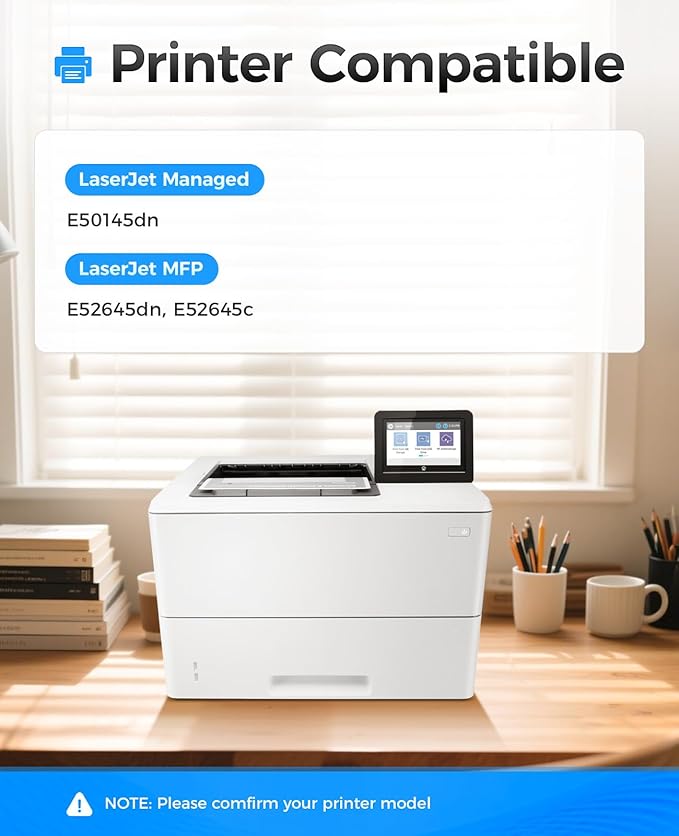 - Compatible Printers: Compatible with HP LaserJet Managed E50145dn LaserJet MFP E52645dn E52645c Printer.