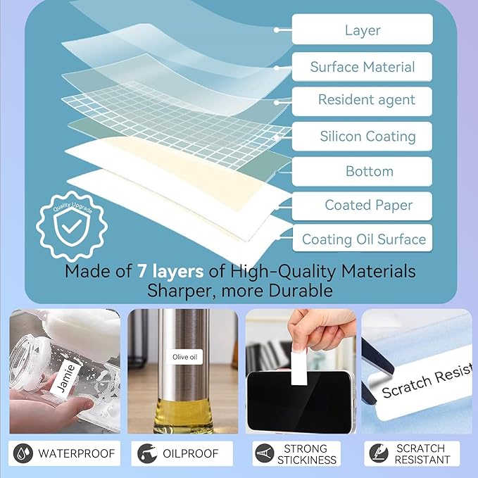 - No Ink Or Toner — Using thermal printing technology to print clearly without ink or ribbon. The printed content can be stored for a long time under normal temperatures. The label paper has strong adhesiveness, no color fade, water-proof, oil-proof, tear-resistant, non-toxic, harmless, and degradable.