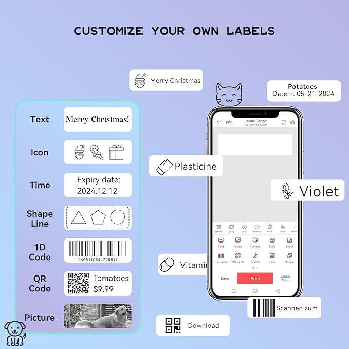 - Not Suitable For Encrypted Printer — NIMBOT D11 New Model/D110/D101/H1, HPRT H11/Q2, VRETTI HP2, NELKO P21, SUPVAN E10, POLONO P31S, MAKEID Q1/E1/L1.