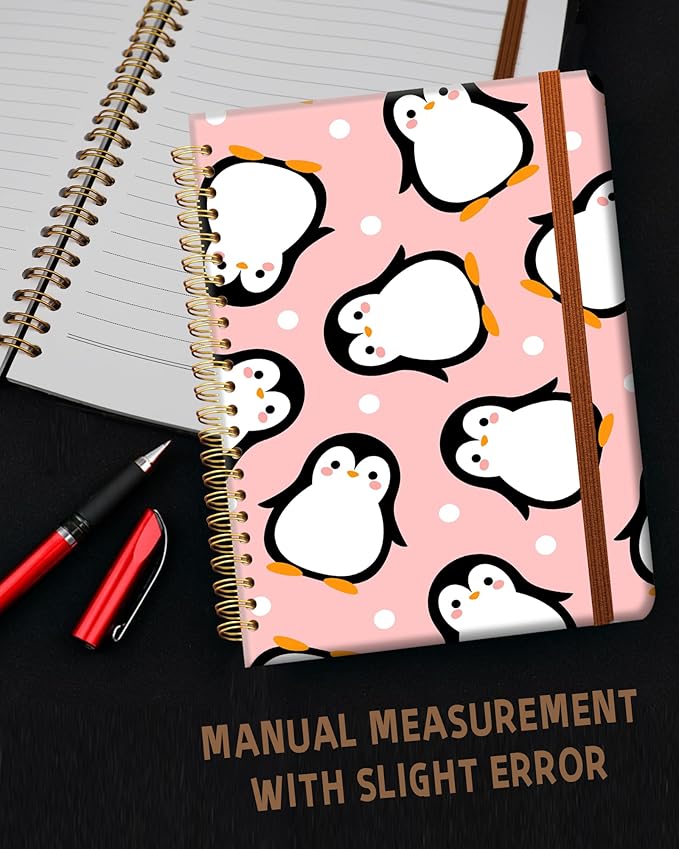 Ruled Spiral Writing Notebook,A5 Hardcover Lined College Journal for Women,Strong Twin-Wire Binding with Premium Paper,8.4" X 6",Perfect for School,Office,Home(Cute Penguin)