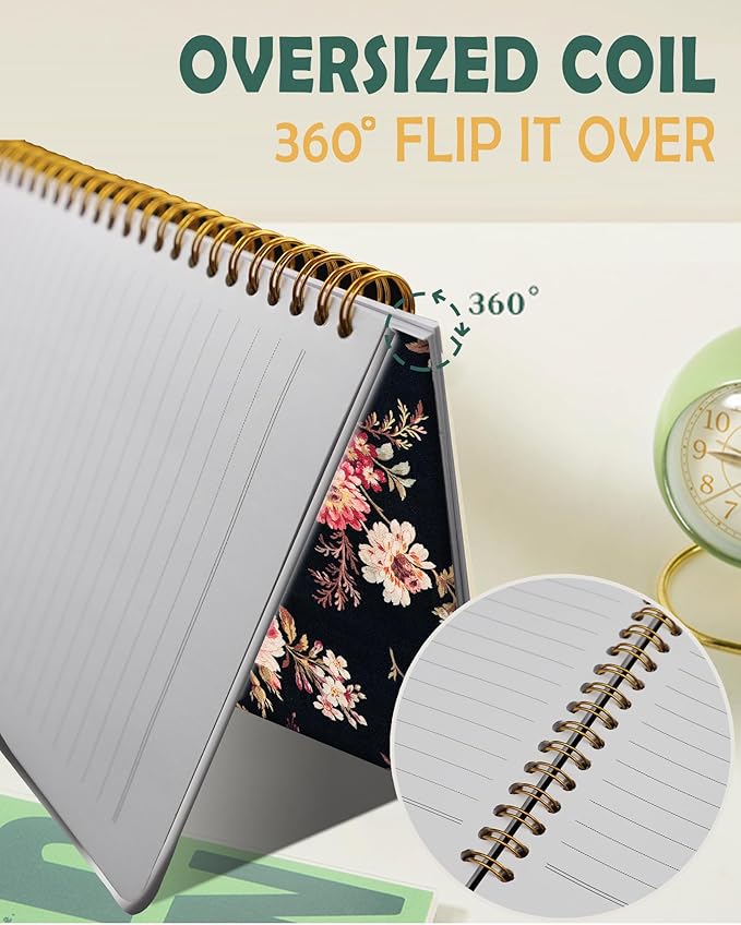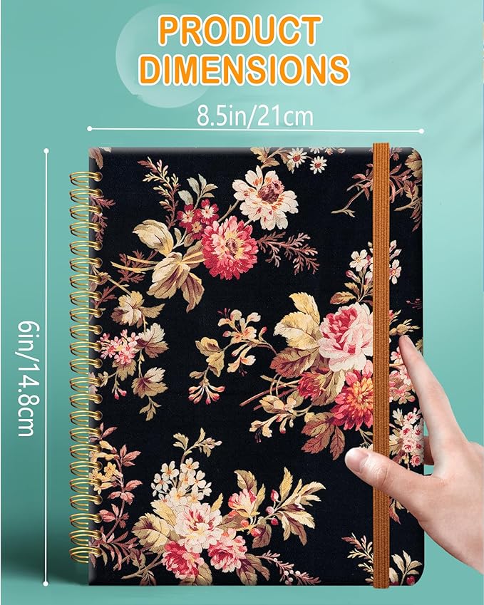 Ruled Spiral Writing Notebook,A5 Hardcover Lined College Journal for Women,Strong Twin-Wire Binding with Premium Paper,8.4" X 6",Perfect for School,Office,Home(Roses Wild Flower)