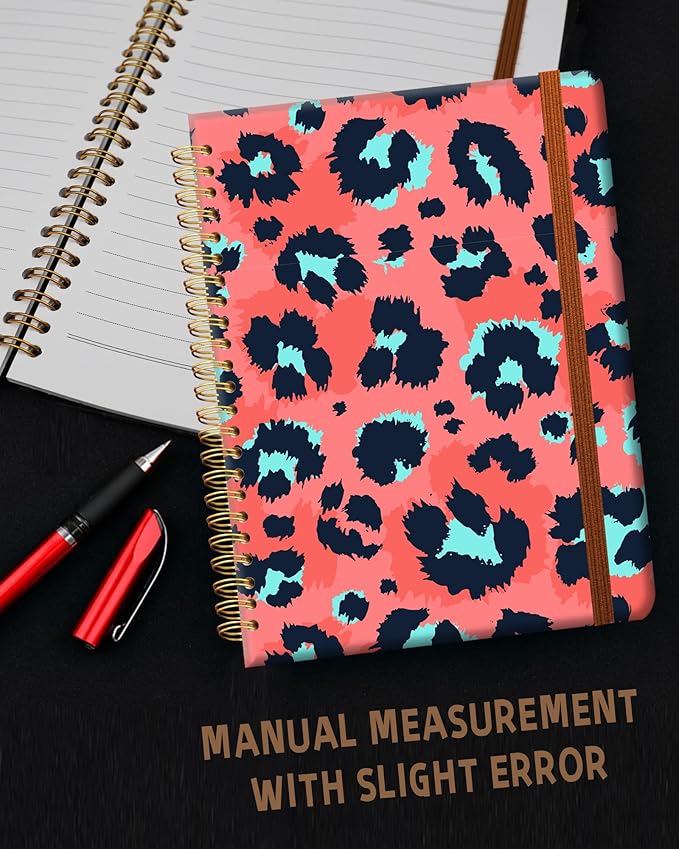 Ruled Spiral Writing Notebook,A5 Hardcover Lined College Journal for Women,Strong Twin-Wire Binding with Premium Paper,8.4" X 6",Perfect for School,Office,Home(Coo Pink Leopard)