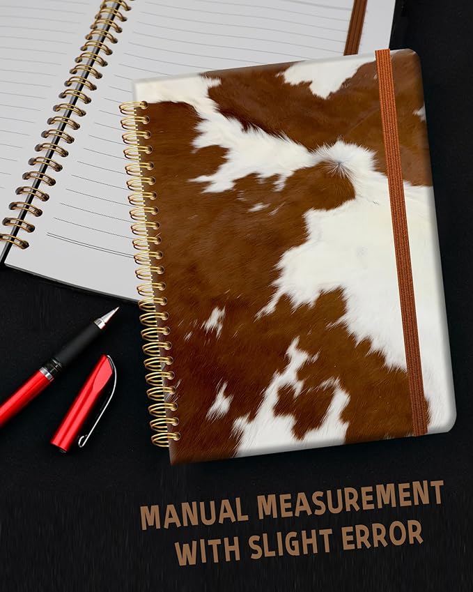 Ruled Spiral Writing Notebook,A5 Hardcover Lined College Journal for Women,Strong Twin-Wire Binding with Premium Paper,8.4" X 6",Perfect for School,Office,Home(Western Fur Cow)
