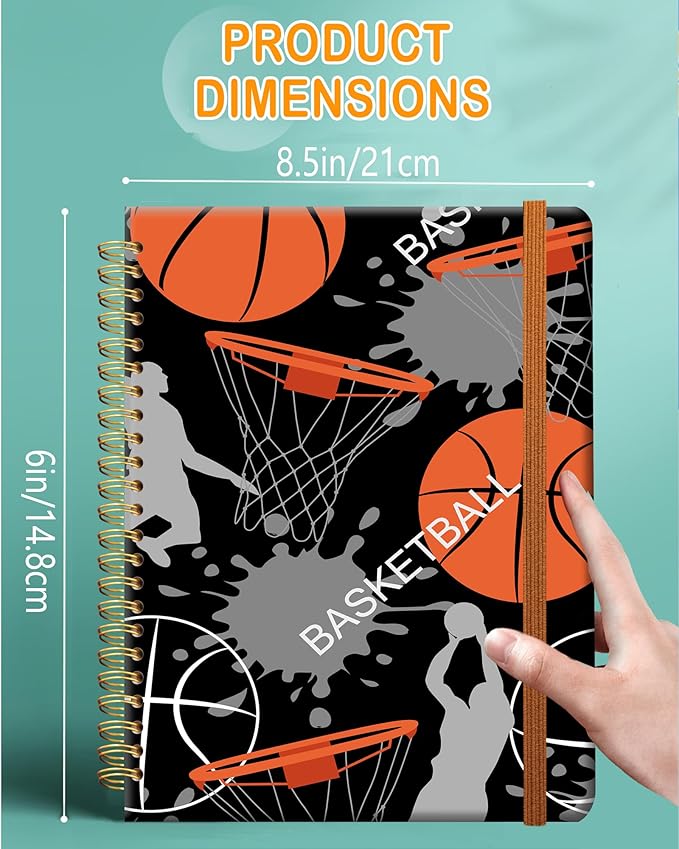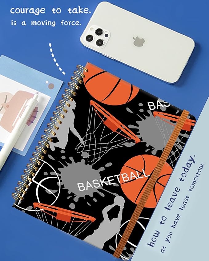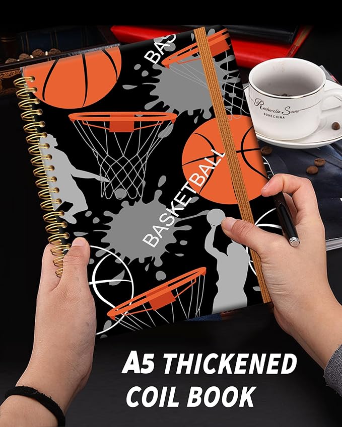 Ruled Spiral Writing Notebook,A5 Hardcover Lined College Journal for Women,Strong Twin-Wire Binding with Premium Paper,8.4" X 6",Perfect for School,Office,Home(Basketball)