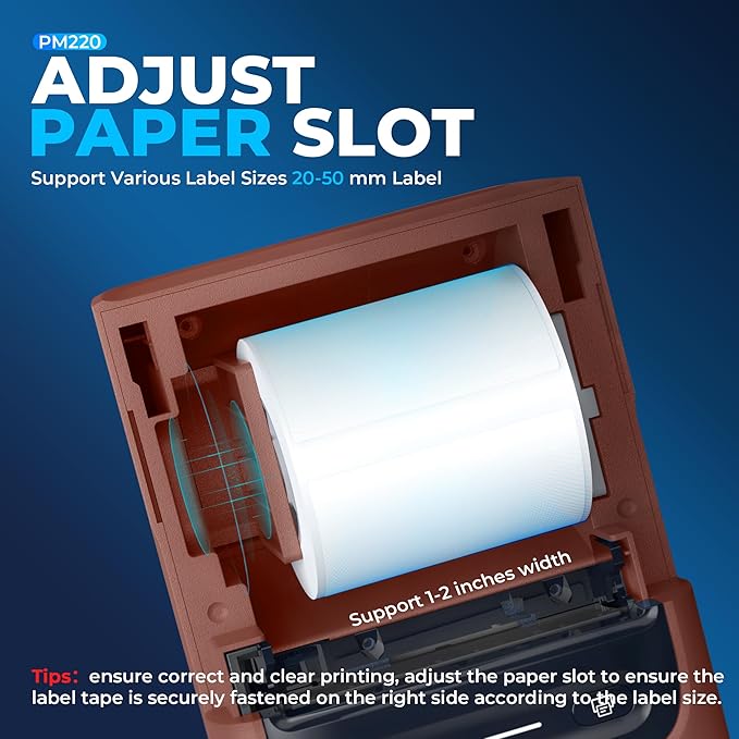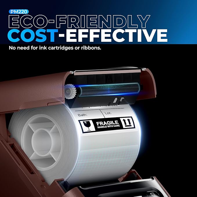 - Portable- PM220 label maker machine with tape compatible with smartphone & PC. Easily connect label printer to your smartphone in just 5 seconds for fast and convenient printing, label printer achieves convenient, smooth & fasts printing. Mini compact design, you can bring this portable label maker machine with tape to anywhere.(Note: charging adapter not included, not suitable for fast charging adapter.)