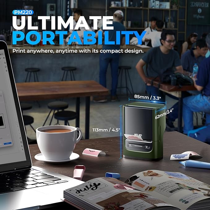 - Portable- PM220 label maker machine with tape compatible with smartphone & PC. Easily connect label printer to your smartphone in just 5 seconds for fast and convenient printing, label printer achieves convenient, smooth & fasts printing. Mini compact design, you can bring this portable label maker machine with tape to anywhere.(Note: charging adapter not included, not suitable for fast charging adapter.)