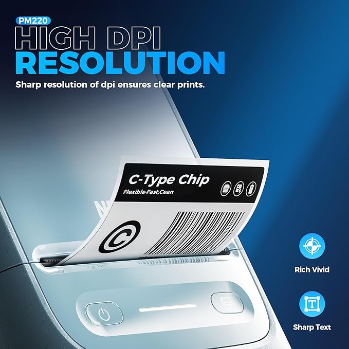 - Portable- PM220 label maker machine with tape compatible with smartphone & PC. Easily connect label printer to your smartphone in just 5 seconds for fast and convenient printing, label printer achieves convenient, smooth & fasts printing. Mini compact design, you can bring this portable label maker machine with tape to anywhere.(Note: charging adapter not included, not suitable for fast charging adapter.)