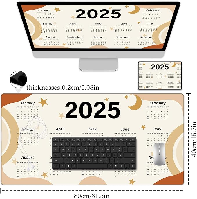 2025 Calendar Desk Pad Protector, Stitched Edges Mouse Pad, Large Office Desk Mat, Non-Slip Desk Blotter, Laptop Desk Pad, Desk Writing Pad for Office and Home (31.5" x 15.7 ")