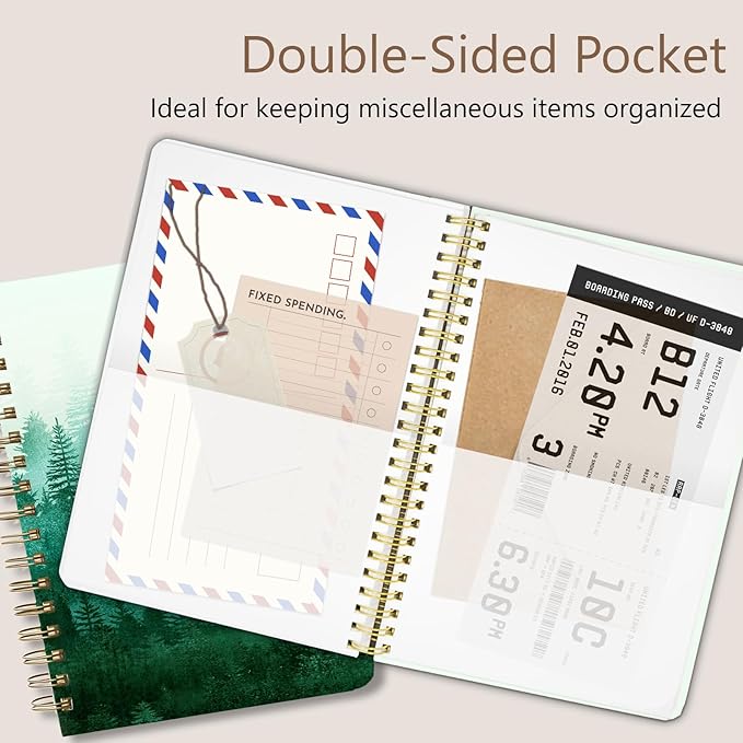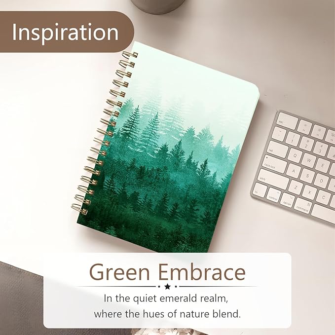 Cute Spiral Notebook journal A5 Aesthetic Pretty Floral Design for Women Girls Kawaii with Pocket, 8.5 x 5.7 inch, Green Forest