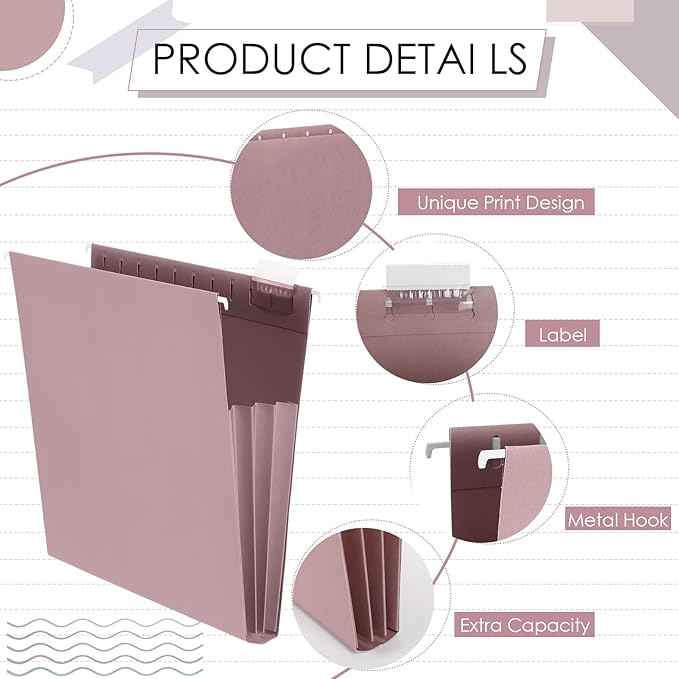 - Cute Colorful Style: the color scheme is soft and muted tones of taupes, warm pink, creams with accents of chartreuse and soft teals; Organize different types of files by these letter size hanging file folders for quick and easy identification