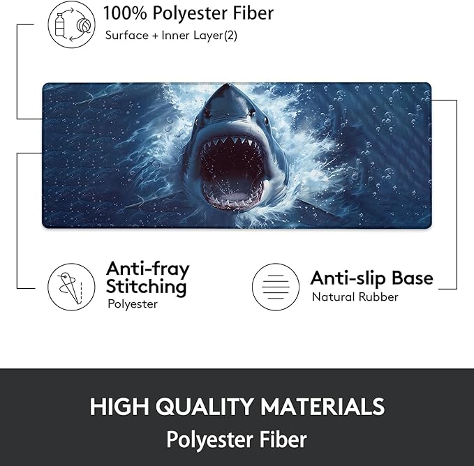 Gaming Mouse Pad, Ocean Shark Mouse Pad, Desk Mat, Non-Slip Rubber Base MousePads for Computers Laptop Office School Home Accessories Decor 31.5" x 11.8"
