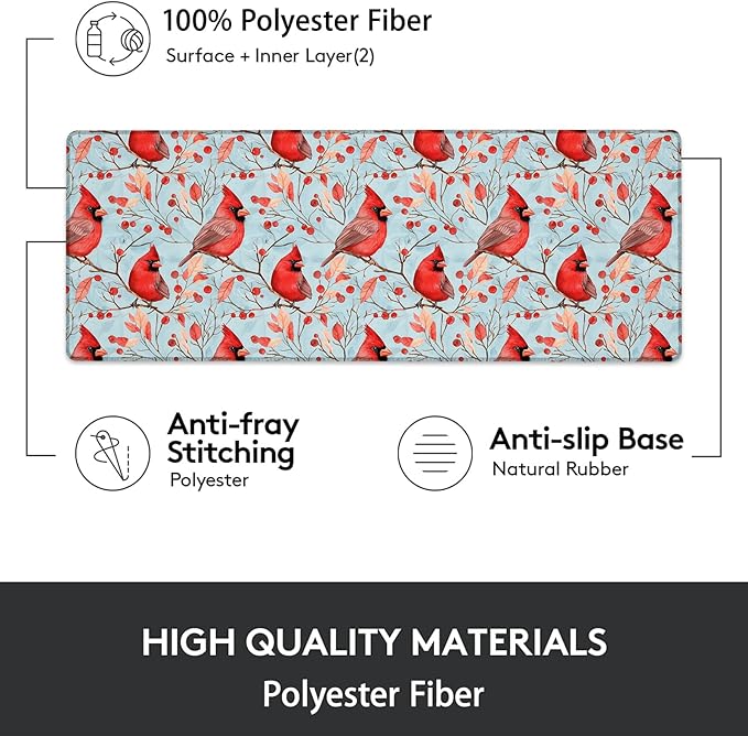Gaming Mouse Pad, Bird Cardinal Mouse Pad, Desk Mat, Non-Slip Rubber Base MousePads for Computers Laptop Office School Home Accessories Decor 31.5" x 11.8"