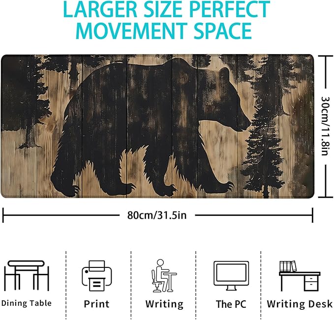 Gaming Mouse Pad, Vintage Bear Mouse Pad, Desk Mat, Non-Slip Rubber Base MousePads for Computers Laptop Office School Home Accessories Decor 31.5" x 11.8"