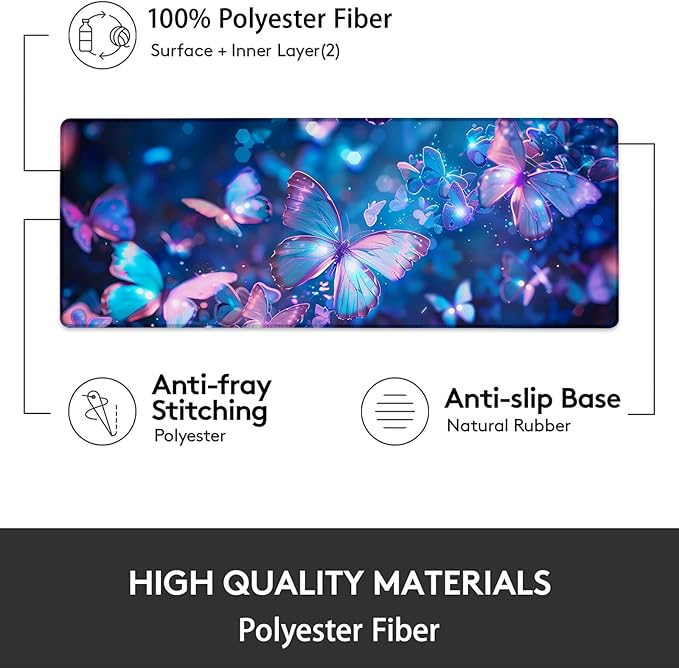 Gaming Mouse Pad, Butterfly Mouse Pad, Desk Mat, Non-Slip Rubber Base MousePads for Computers Laptop Office School Home Accessories Decor 31.5" x 11.8"
