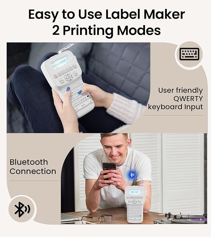 - Two Printing Options: Labeler maker machine with tape supports both keyboard and Bluetooth printing options, allowing users to choose the most suitable method based on their needs, making the printing process more flexible and convenient