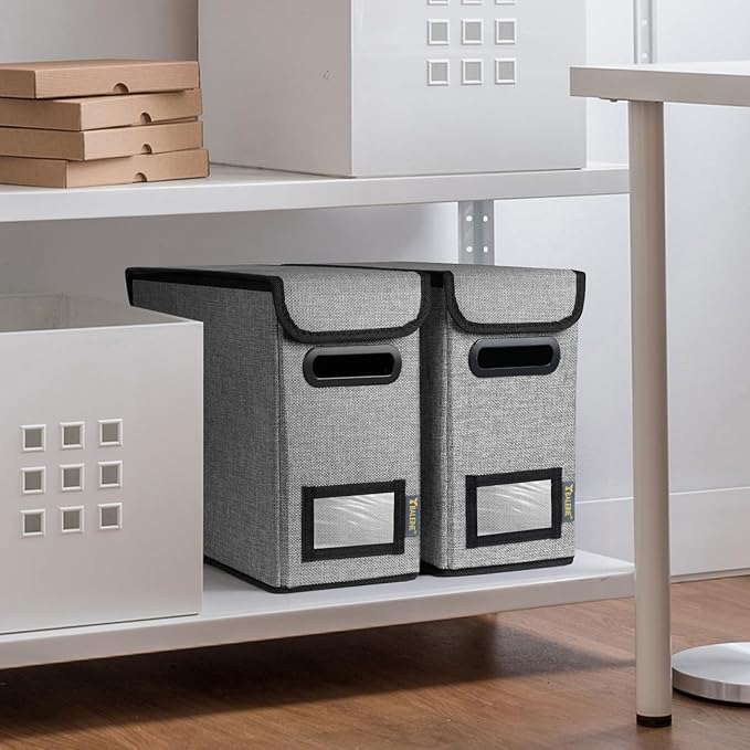 - [OPTIMIZED DESIGN] Designed with convenience in mind, our file storage box helps to elevate your efficiency and organization. The transparent label slot allows for quick identification of the contents stored inside the box. The collapsible design and sturdy handles ensure effortless storage and movement, making it convenient and easy to use
