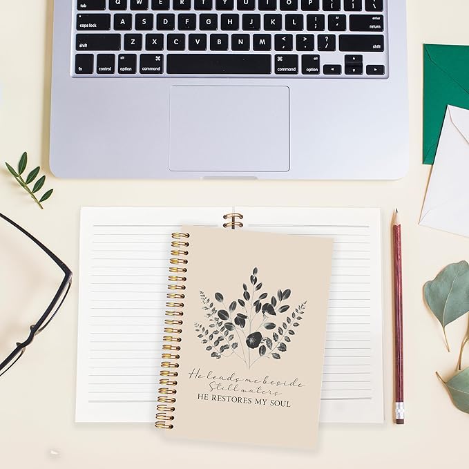 BearCake Christian Notebook Journal, Christian Gifts for Women, PSALM 23:3 He Restores My Soul Prayer Journal for Women, Bible Journaling Neutral Hardcover Spiral Notebook 5.5x8.3