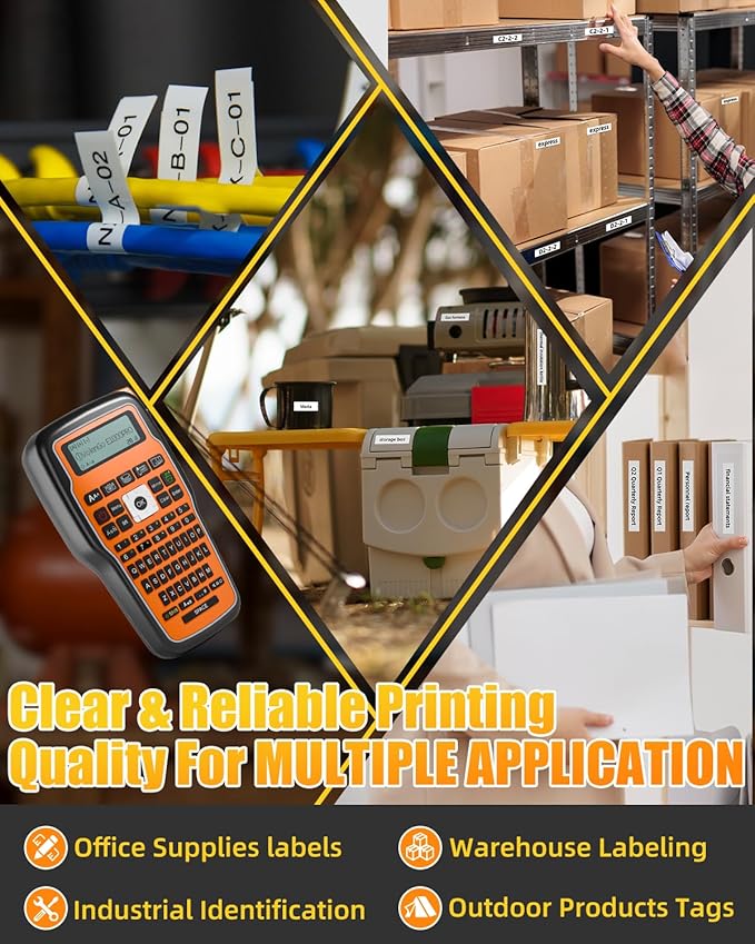 - π₯πππ¨ππ πππππ πͺππ¦π§π: Save 22 inches of tape by printing 20 labels at a time with E1000 label maker machine with tape; narrower settings allow for better control and reduce waste by 42 millimeters per label