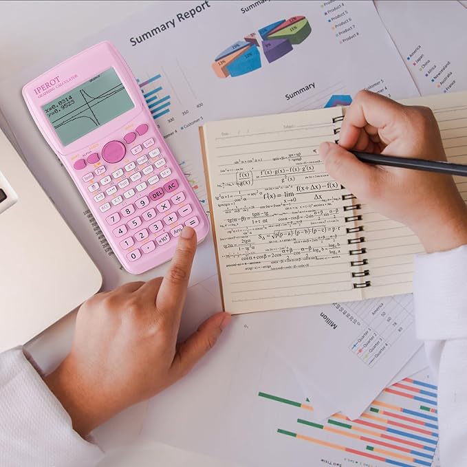 Scientific Calculators with Graphing Calculator, IPEROT Pink Scientific Calculators 10 Modes/ 4 Graphing Functions, Desktop Math Calculator Ideal for School Supplies, Students, College, Teachers