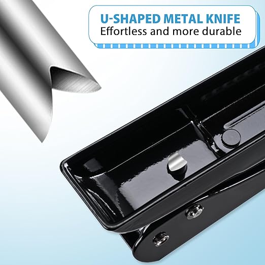 - 【U-SHAPED CUTTER HEAD】With the sharp and strong penetration U-shaped steel cutter head, the 1 hole puncher punches 1/4 inch holes cleanly and smoothly without roughness and burrs around the edges.