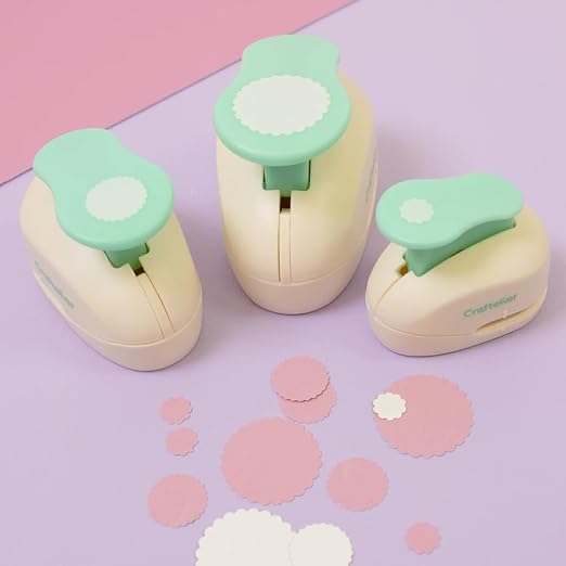 - π³οΈ CRAFT CIRCLE SCALLOP PUNCH SET: Includes 3/8" (0,95cm), 5/8" (1,58cm), and 1" (2,54cm) scalloped circle punches.