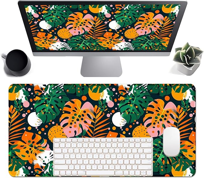 - Decorative Appeal: Tropical leaves print seamless pattern with abstract shapes, bright colors. This boho and retro aesthetics, creating a lively atmosphere. it a perfect desk accessory for those who value both style and functionality, making it an excellent gift for anyone looking to elevate their desk decor.