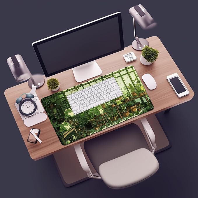 Frog Cute Mousepad 31.5 x 15.7 inch, Large Green Desktop Mat, Waterproof Desk Mat Gaming Mouse Pad, Laptop Pad, Computer Writing Mat for Home Office Desk Decor