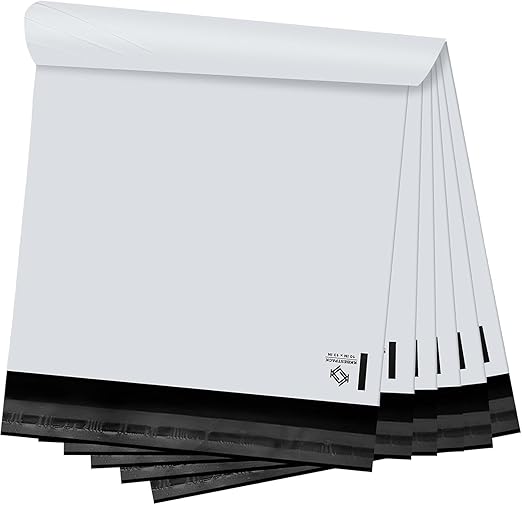 - CARRIER-APPROVED large shipping bags are 100% recyclable white poly mailers have high-strength seams and 1.5” flaps for over-stuffing.