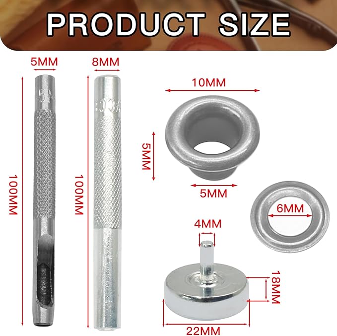 - Easy to install and use: Easy to install, punching tools can be used to drill holes in leather crafts, and then hammered to push the grommets together.