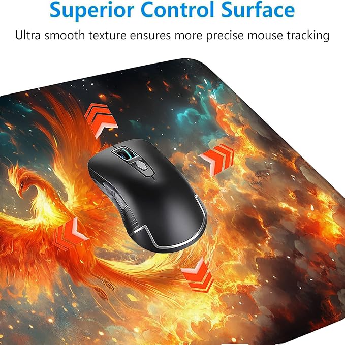 - 【Fire Phoenix Gaming Mouse Pad Desk Pad】Extended desk mat measures 31.5x11.8 inches and is 3mm thick to cover most desktops. Provides a wide area for your laptop, mouse, keyboard and other desktop items. You can move your wireless mouse freely without any interference.
