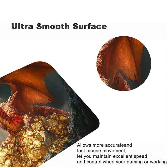 Red Dragon Gaming Mouse Pad Desk Pad Grand Majestic Treasure Hoard Gaming Mouse Mat with Stitched Edges,Non-Slip Waterproof Rubber Base Mouse Mat Office Computer Keyboard Laptop Home 31.5"x11.8"