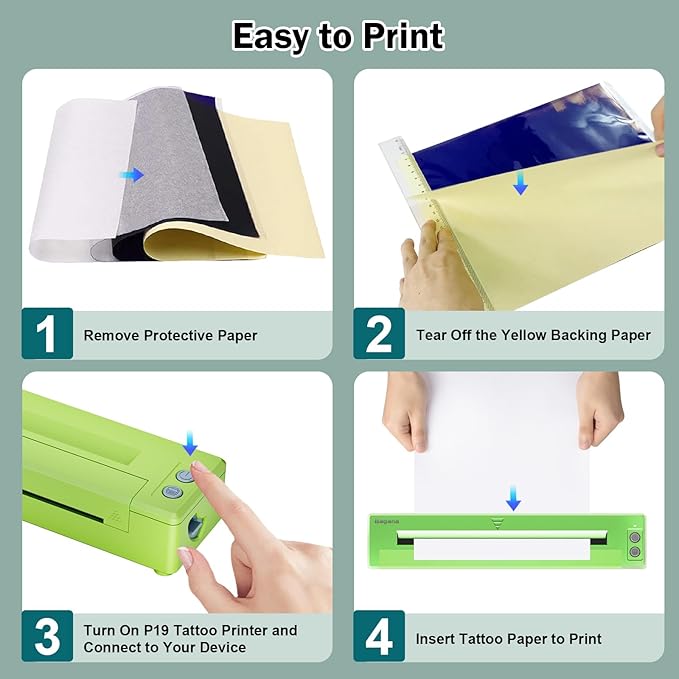 - Professional Tattoo Stencil Printer: Specifically built for tattoo use. Bagana P19 thermal tattoo stencil printer with built-in 2500mAh rechargeable battery boasts smallsize lightweight wireless design, providing unparalleled convenience and usability to help you create tattoos anytime anywhere. Whether you are an experienced tattoo artist seeking to simplify your workflow or a beginner exploring creative paths, the P19 tattoo transfer printer is your ideal companion.