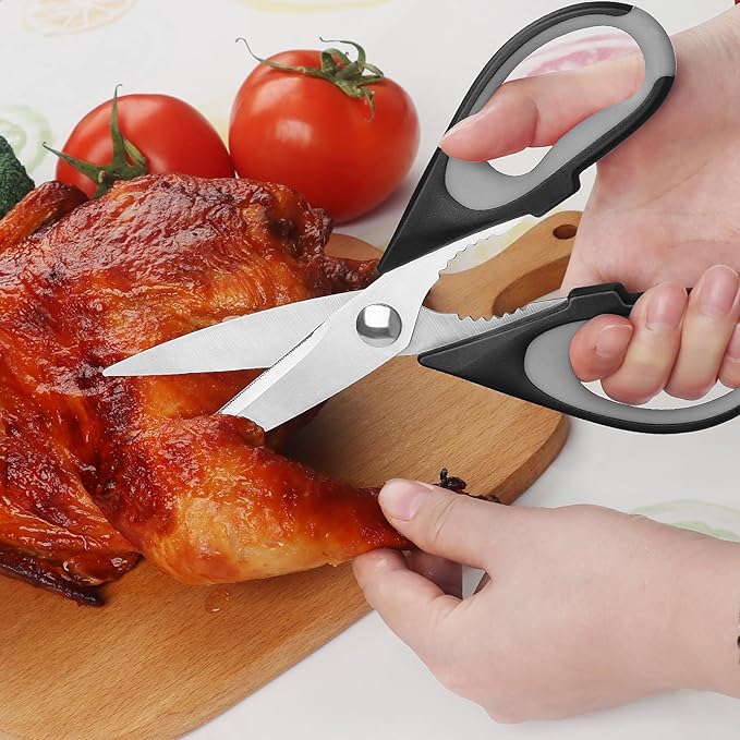- These kitchen scissors are made of food-grade stainless steel, corrosion-resistant and rust-free, dishwasher safe.PP+TPR rubber handles, comfortable to grip and easy to use.