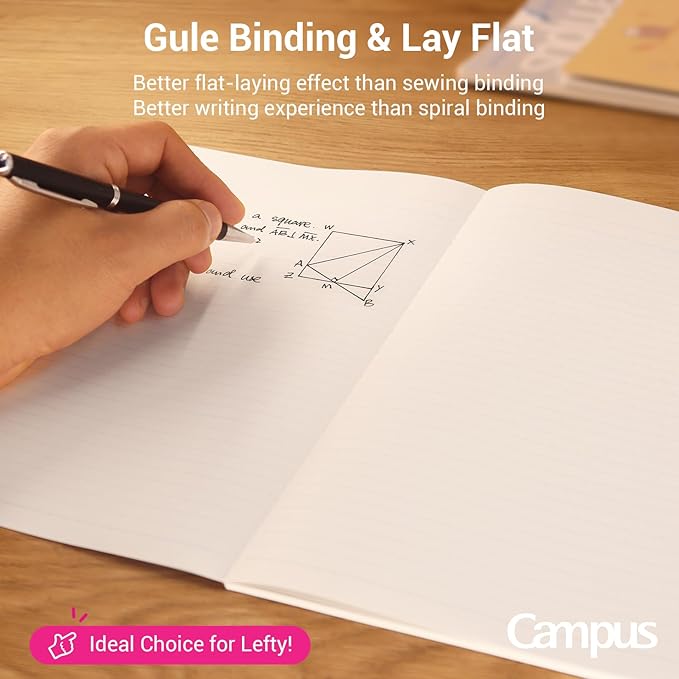- Lay Flat Design: Campus strong glue binding allows the aesthetic composition book to be opened 180 degrees without any forcement. The flat design of wireless notebooks are able to easily write across two pages in special circumstances, such as creating various diagrams, mind maps, notes and even drawings