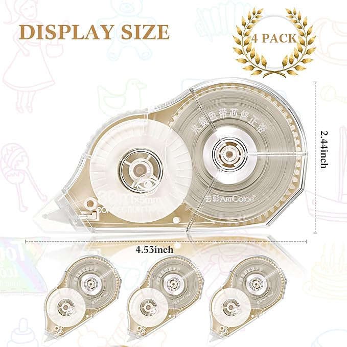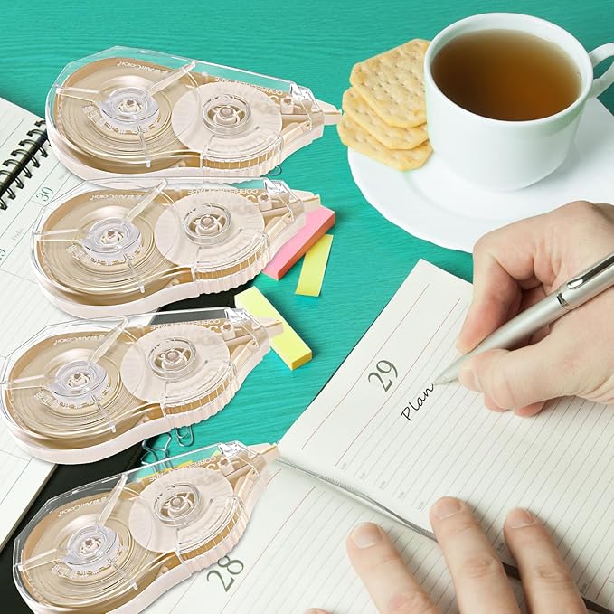 Zonon Correction Tape Cream Color Beige Corrective Tape Eraser 100 Feet Long for School Office Supplies Crafting, Note Taking, Journal, Case Color May Vary (4 Pieces)