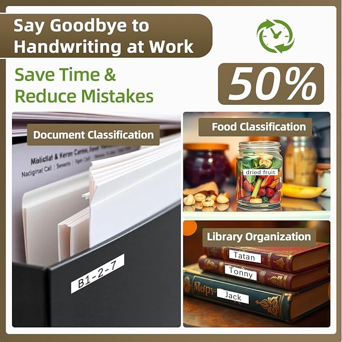 - Efficient Labeling: Ideal for a multitude of tasks around the office or home, such as filing, storage, and asset management. Create high-quality labels for files, folders, shelves, books, and accessories. Suitable for all indoor labeling needs, as well as various outdoor and industrial environments, including warehouses, chemistry labs, schools, hotels, and hospitals. Quick to install and prints clear, attractive labels, making it easy to keep your space tidy and organized at a glance
