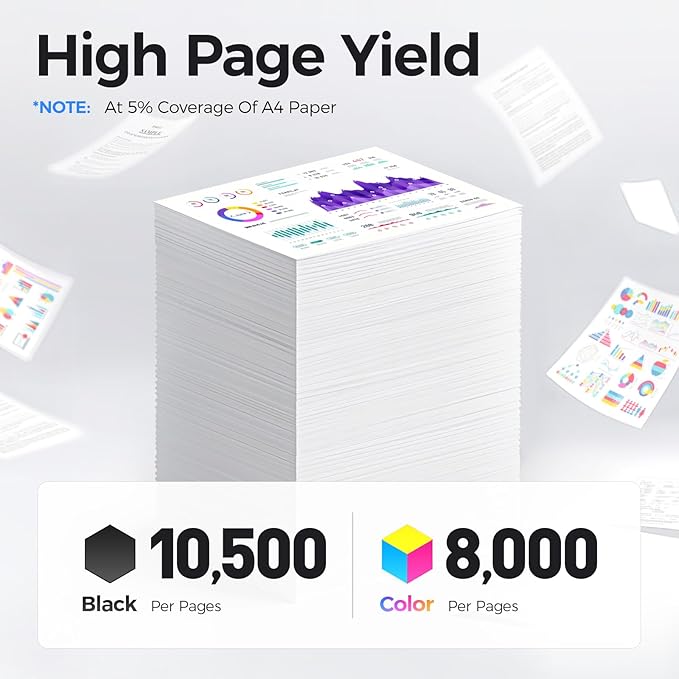 - Extra High Yield: up to 10,500 pages per C400/C405 Black and 8,000 pages per C400/C405 Color (Total 34,500 pages, 5% coverage),with High Yield Version C400 C405 toner Cartridges.