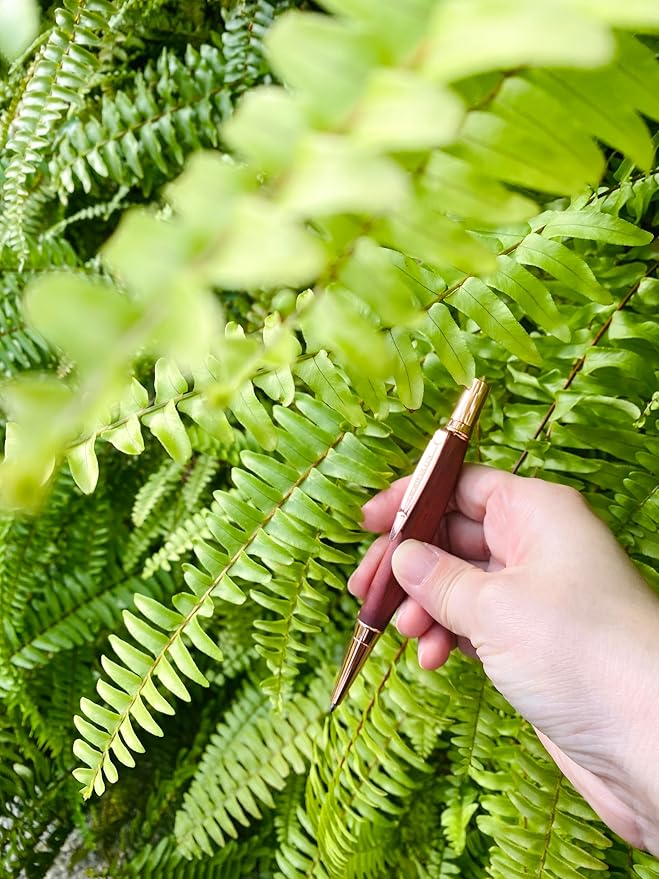 - TRICRAFT SERIES – TRIANGULAR GRIP CONTROL : This handcrafted ballpoint pen and pencil set features a triangular grip that enhances comfort and control. Made from rosewood with naturally unique grain, each piece is accented with rose gold-plated metal for a warm, refined finish.