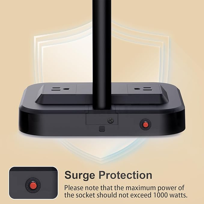 - Surge Protection: When using high power appliances, if the total power exceeds 1000W, the desk lamp will automatically shut down and cut off the power to protect our expensive devices.
