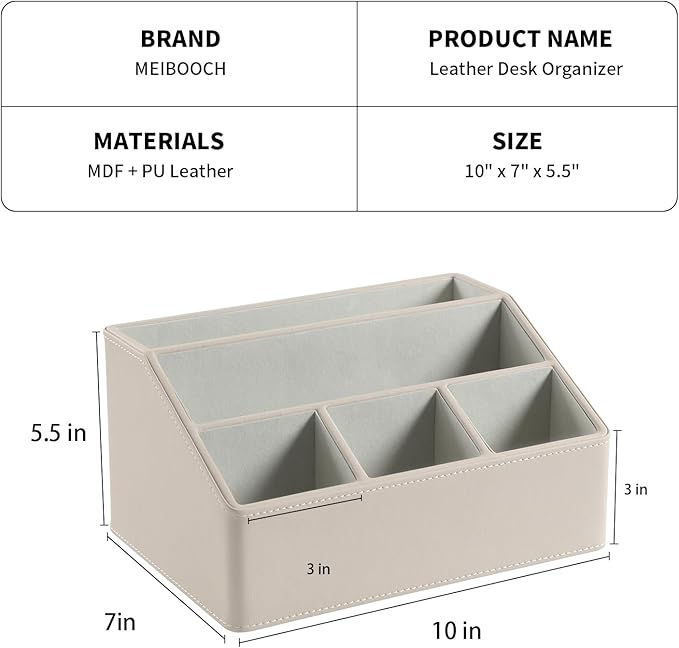 - MEIBOOCH PU leather desktop organizer with 5 compartments