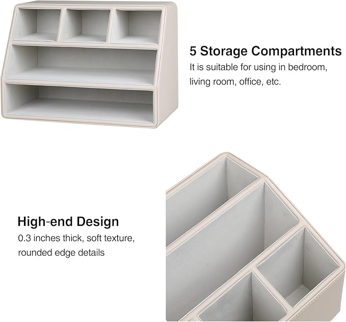 PU Leather Desk Organizer, Luxury Remote Control Holder for Home, Office Desk Accessories Table Caddy Bedside Nightstand Organizer (Dark Beige)