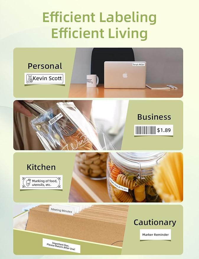 - Clear & Lasting Prints: Thermal printing technology makes for sharp and precise outputs. The easy-peel-and-stick printing tape is waterproof, won't fade for years, and leaves no sticky glue residue