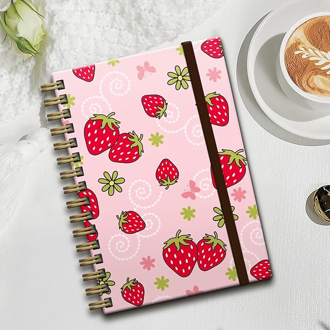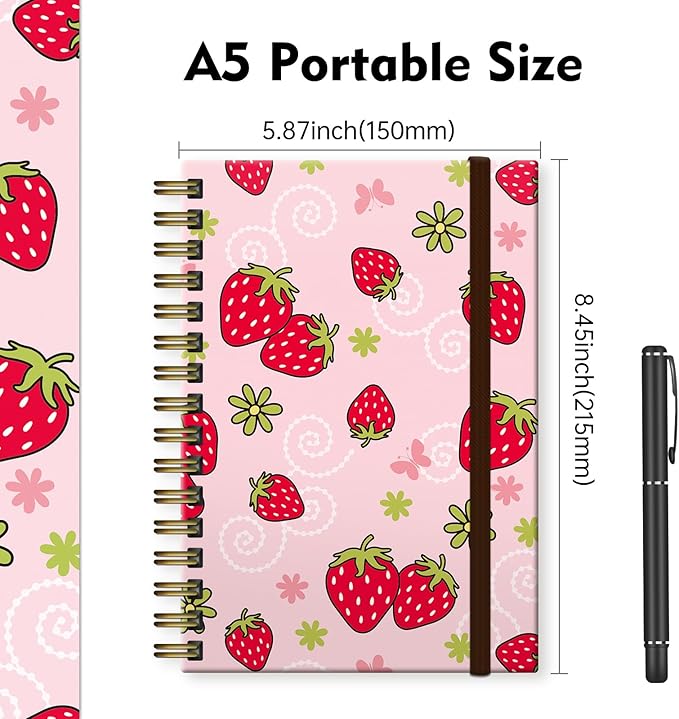 Spiral Journal Notebook,Binding with Premium Paper for Girl Women,Cool Funny 120 Pages,100gsm A5 College Ruled NotebookJournal,Perfect for Gifts Nurse Teacher Women(Cute Pink strawberry)