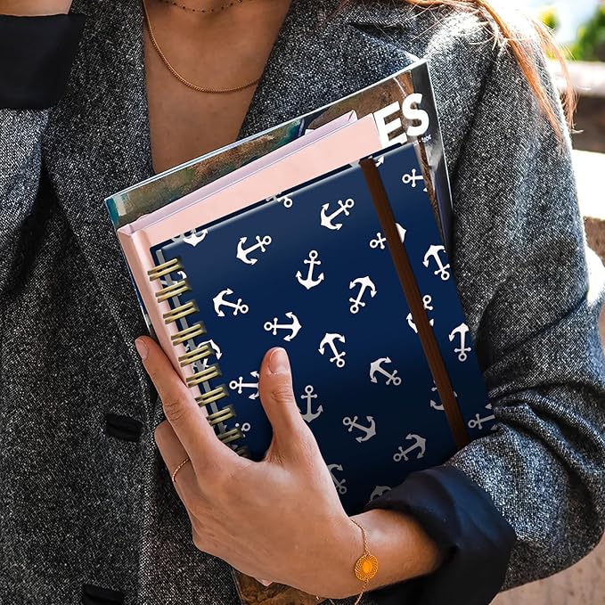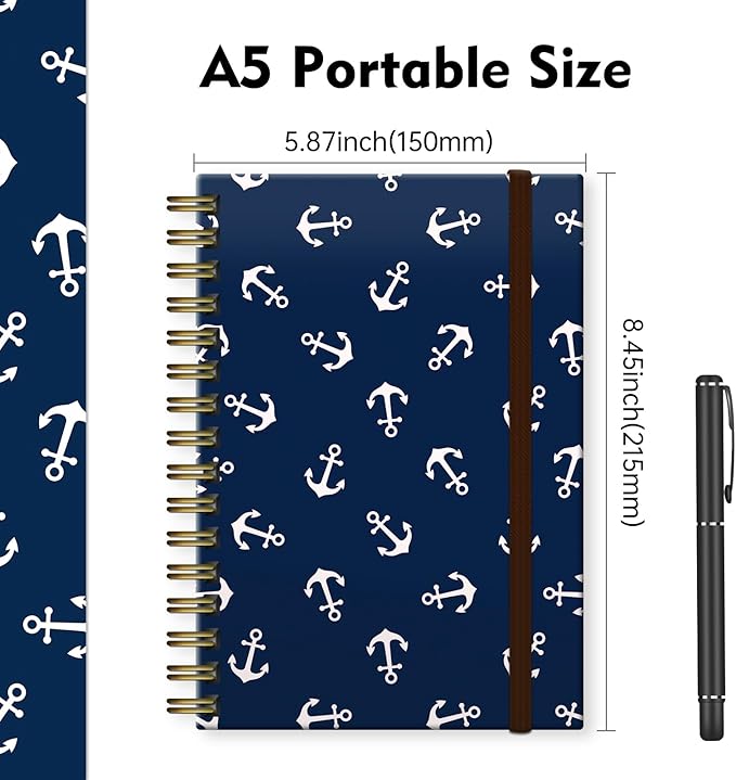 Spiral Journal Notebook,Strong TwinWire Binding with Premium Paper for Girl Women,Cool Funny 120 Pages,100gsm A5 College Ruled NotebookJournal,Perfect for Gifts Nurse Teacher Women(Blue anchor)