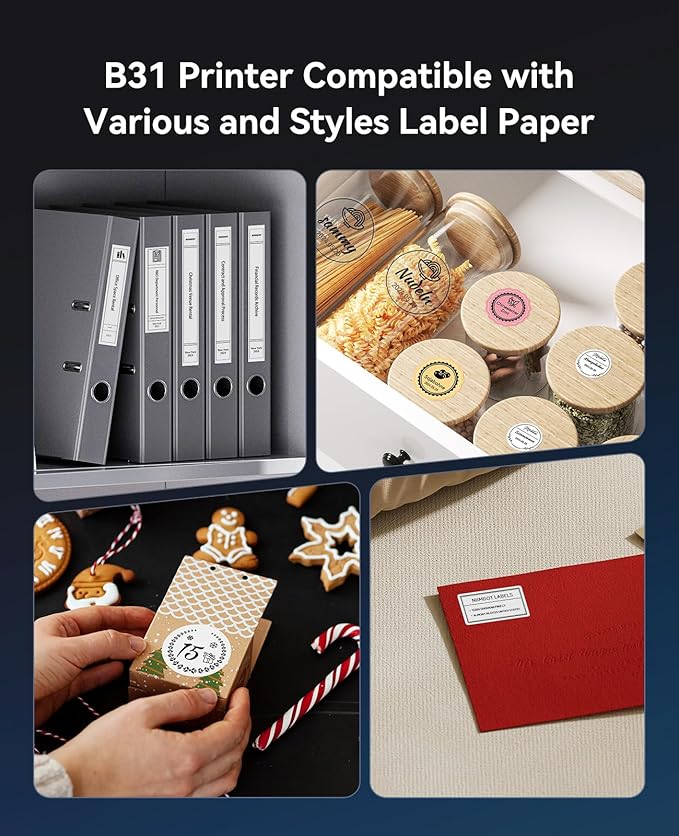 NIIMBOT B31 Label Maker, Thermal Label Printer with Auto Identification, Bluetooth Label Machine Easy to Use for Office, Home, Business, Sticker Maker with a Roll of 3 x 1.57 inch Label/Roll