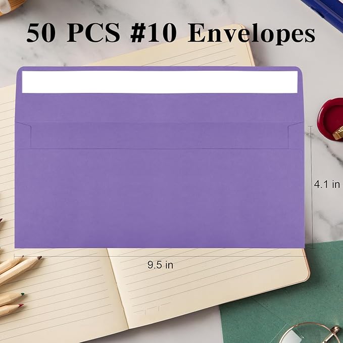 - 【Standard #10 Business Envelopes】These #10 business envelopes kit contains 50 pieces 4 1/8 x 9 1/2 Inches dark purple envelopes, perfect for office or home purposes