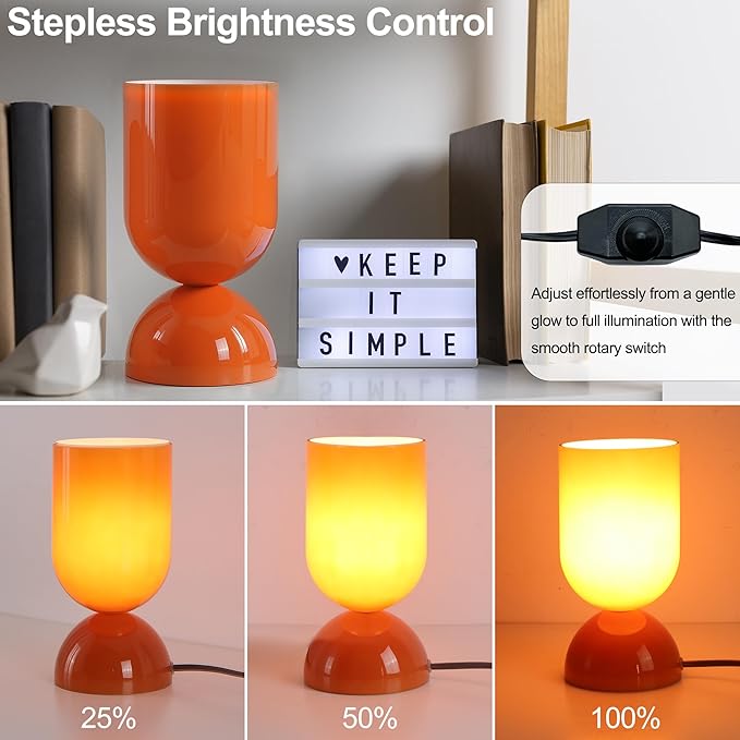 8.9" Modern Glass Table Lamp for Living Room, Dimmable Desk Lamps for Bedroom, UL Listed Nightstand Lamp with Dome Base, End Table Lamps for Kids Room, Side Tables, College Dorm, Office, Glossy Orange