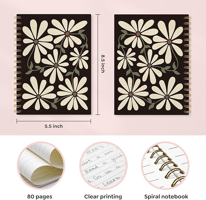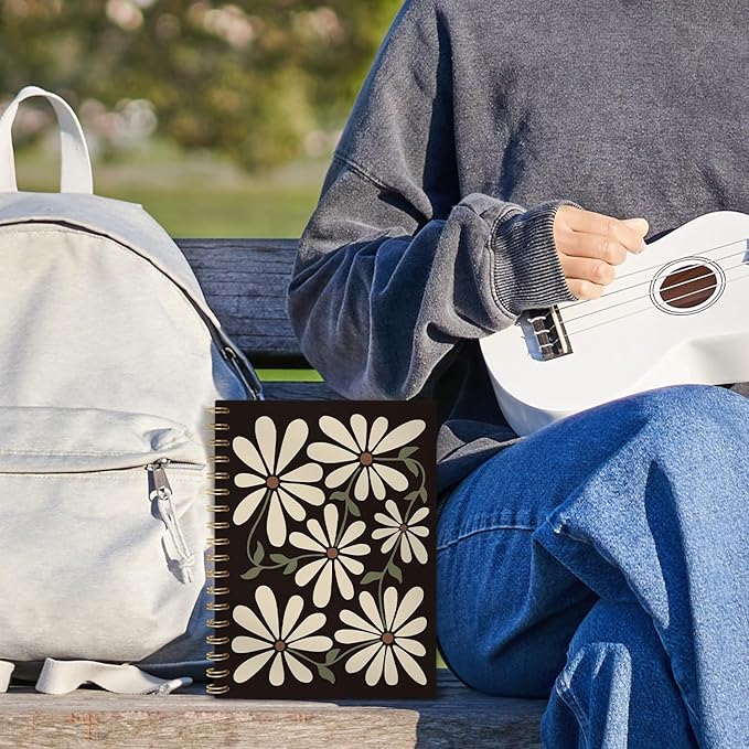 Boho Retro Flowers Spiral Notebook,Bohemian Wildflower Flower Market Lined Notebook Hardcover,College Ruled Notebook Journal for Writing,Boho Gifts for Women Student Teacher,5.5x8.3