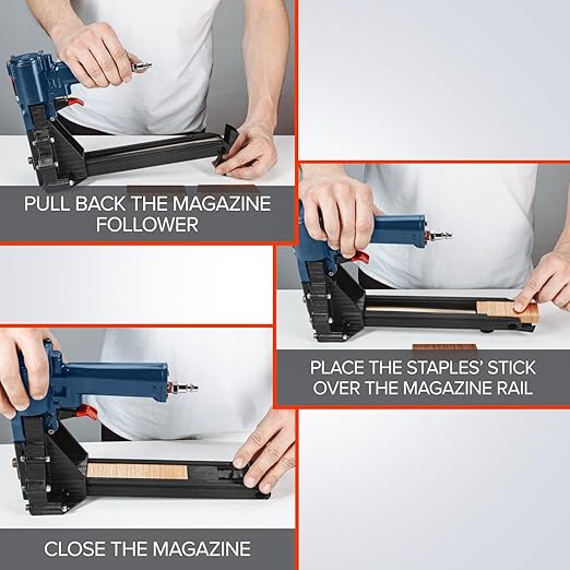 - EASY TO USE: Pull back the magazine follower, place the staples' stick over the magazine rail, close the magazine. Featuring a sharp chisel point, these staples penetrate materials easily, reducing jamming and increasing efficiency in tasks